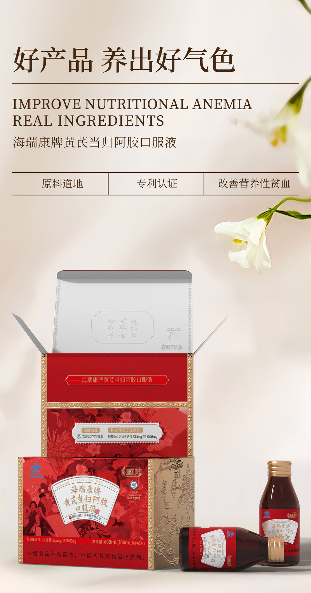 黄芪当归阿胶口服液正品代发女性营养性贫血保健品阿胶补血口服液